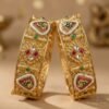 Celebrate timeless craftsmanship with these exquisite Heritage Kundan Meenakari Bangles, inspired by royal Indian jewellery traditions. Crafted with intricate gold-tone detailing, these bangles feature a stunning blend of kundan stones, meenakari enamel work, pearl borders, and ruby–emerald color accents that create a rich, regal appeal.