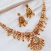 Enhance your ethnic look with this beautifully crafted Gold Plated Traditional Kundan Necklace Set, designed to add royal elegance to your jewellery collection. Featuring intricate temple-inspired craftsmanship, this stunning necklace is adorned with multicolour Kundan stones, green center accents, and delicate pearl drops that create a rich and luxurious appearance. The set comes with matching statement earrings, making it a perfect choice for weddings, bridal wear, festivals, and special occasions.